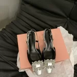 | nameOriginal | Stunning silver ladylike thick heel rhinestone commuter sandals |