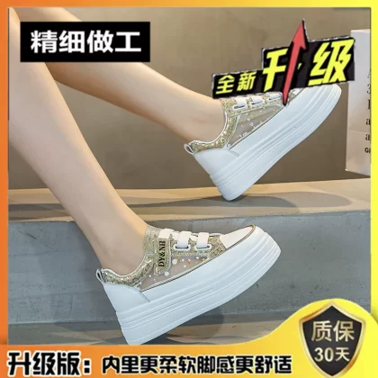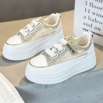Stylish casual white shoes with thick soles and 6cm inner height increase
