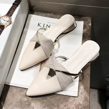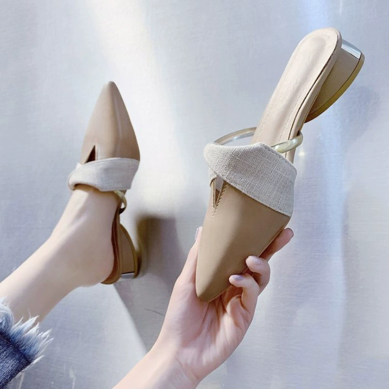 | nameOriginal | Stylish flat-soled color-blocked chunky heel half-slippers worn outside Baotou |