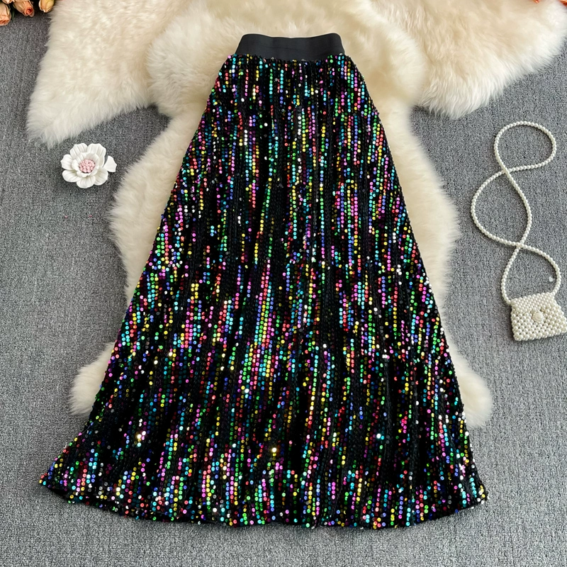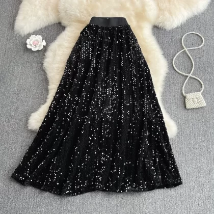 | nameOriginal | Stylish mid-length above-the-knee glittery sequin A-line skirt |