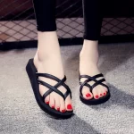 Stylish thick-soled flip-flops with thick heels in black