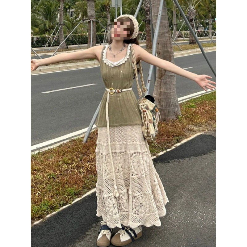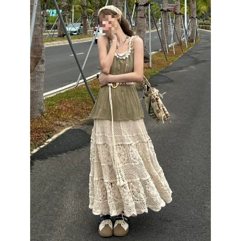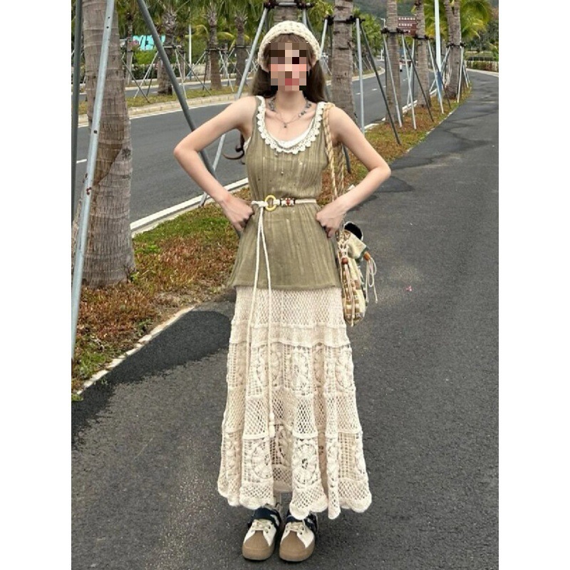 | nameOriginal | suit 2024 New Design Summer Lace Stacked Camisole Versatile High Waist Hollow Skirt Two-Piece Set |