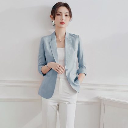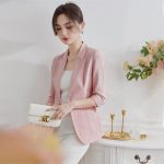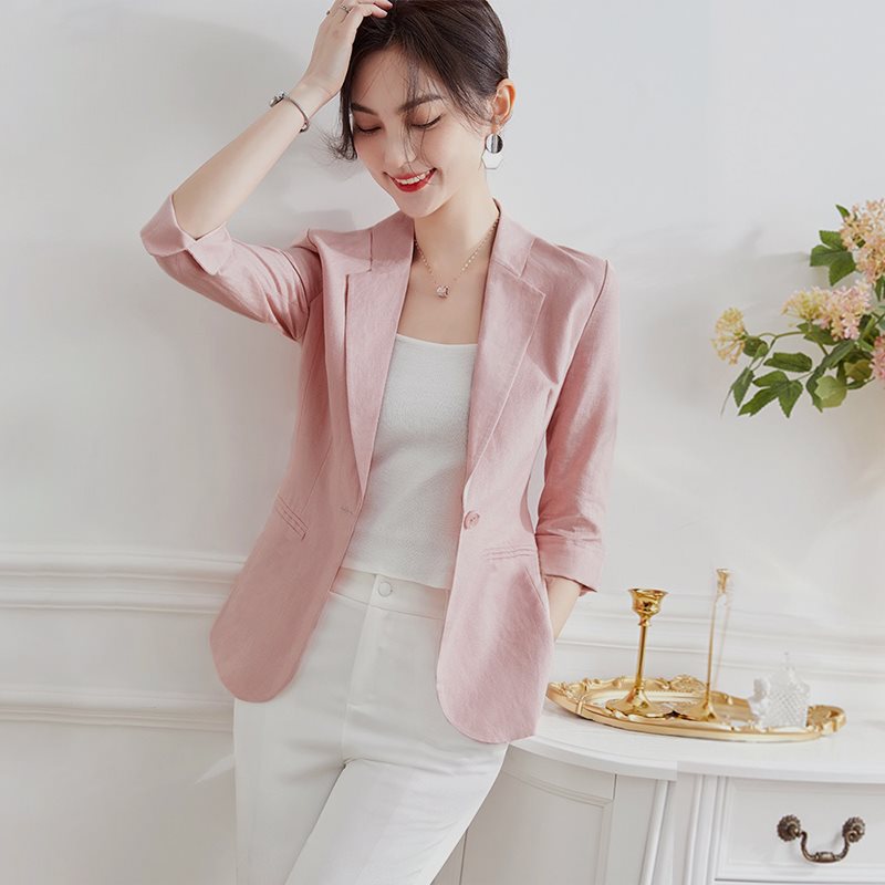 | nameOriginal | Suit Jacket Women's Summer Short Linen Casual Suit Thin Slim-fit Pink Cotton Linen High-end Small Top with Seven-sleeve |