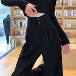بنطلون بدلة للنساء في الربيع والخريف ، طراز جديد مثير 2024 بنطلون نسائي غير رسمي عالي الخصر وراقي بنطلون أسود درابي