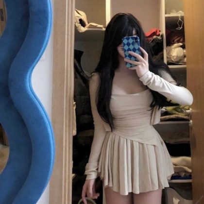 | nameOriginal | suit women's 2024 spring new pure short sunscreen cardigan irregular camisole high waist skirt |