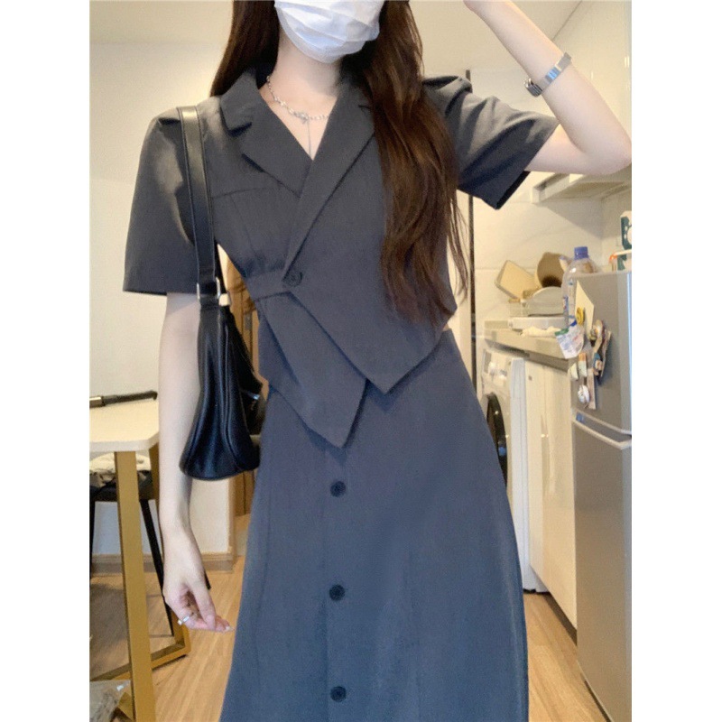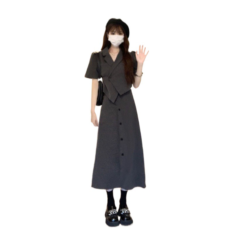 | nameOriginal | suit Women's 2024 Summer New Hong Kong-style Short Irregular Lapel Suit Top High Waist Skirt Two-piece Set |