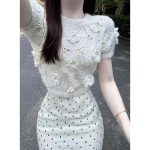 | nameOriginal | suit Women's Unique Super Nice Niche Design Sense Foreign-style Hollow Flower Knitted Top Wave Dot Hip Skirt |