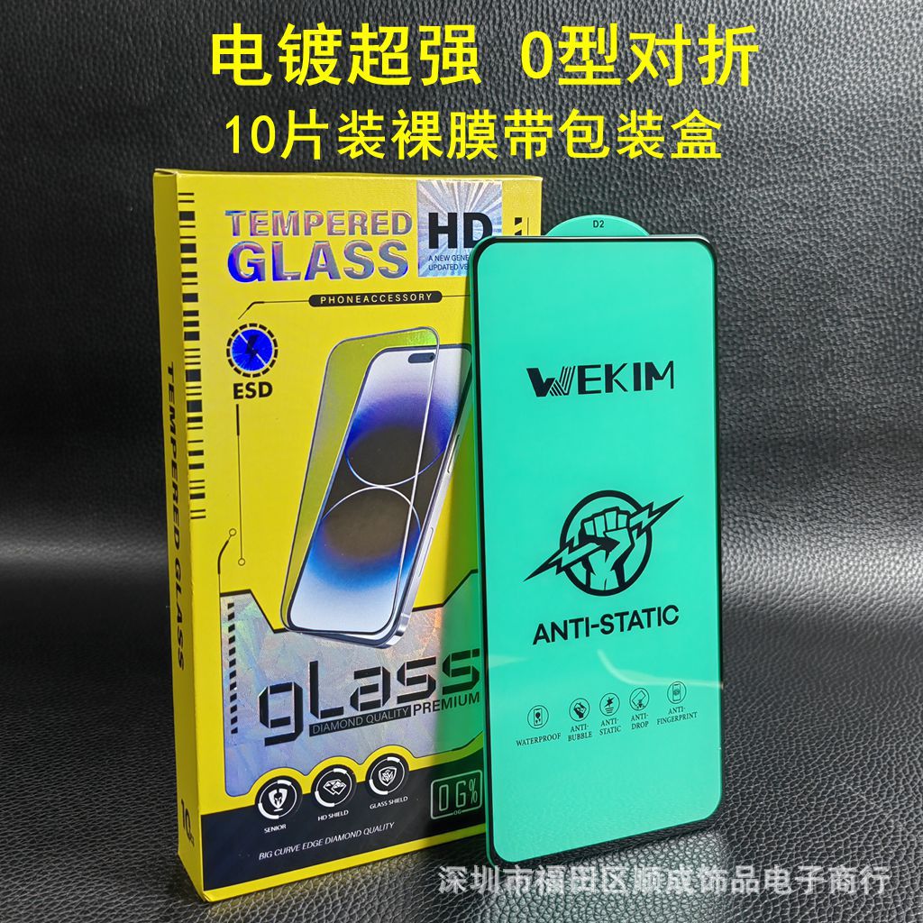 Suitable for Apple 14PRO Super One-piece Net Folding Tempered Film 13PROMAX Electroplating Oil Coating 12 Anti-static