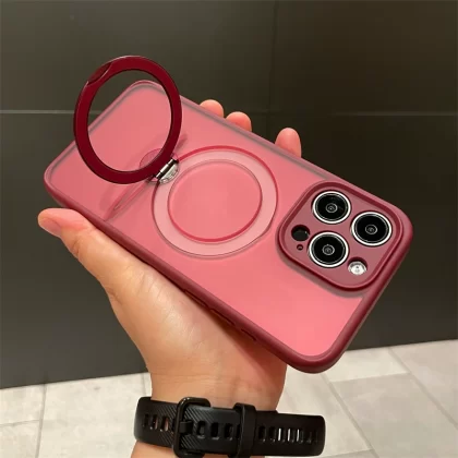 Suitable for Apple 15 mobile phone case iPhone15promax new 360 pivot invisible bracket 14pro anti-fall 13pm frosted transparent 12 magnetic magsafe fifteen por protective cover for men 11