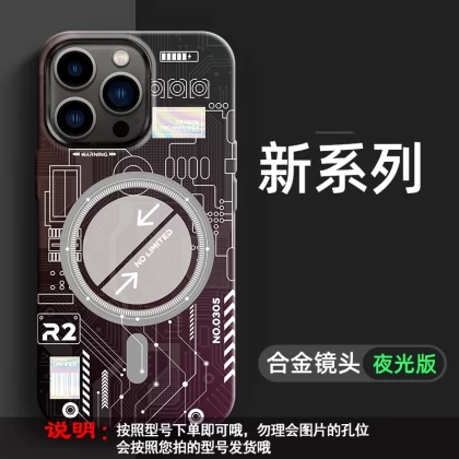 | nameOriginal | Suitable for Apple 15ProMax trendy brand high-end new metal lens 14pro luminous magnetic phone case Magsafe technology circuit board 13 anti-fall matte 12PM protective cover |