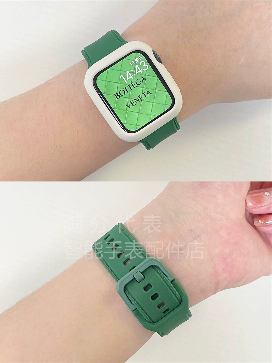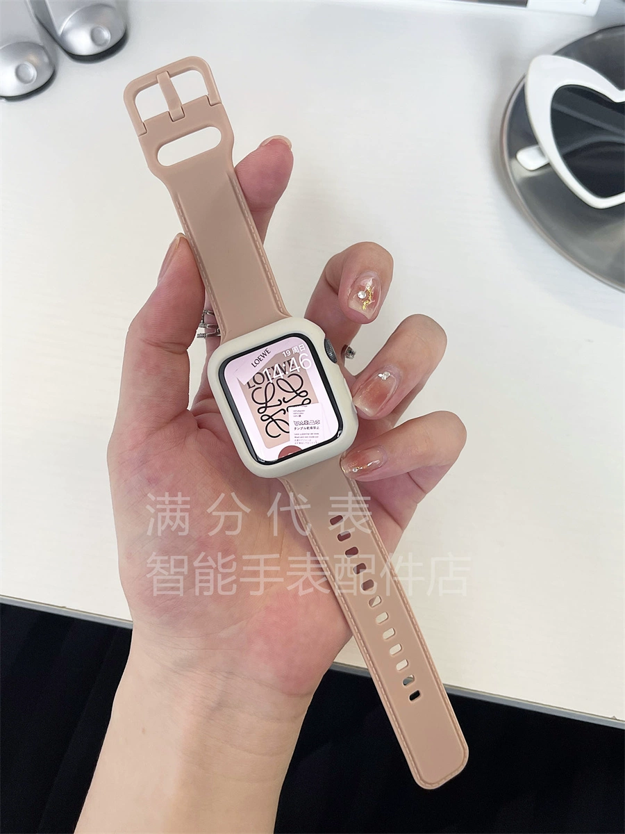 | nameOriginal | Suitable for Apple 789 generation watch liquid square buckle contrasting color strap applewatch6SE sports silicone case for men and women |