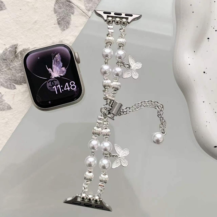| nameOriginal | Suitable for Apple iwatch9 Watch Strap applewatch876se Pearl Butterfly Broken Silver Zipper Women |