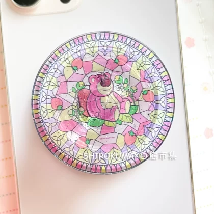 مناسب لهاتف Apple Samsung المغناطيسي اللامع الكرتوني الفراولة الدب Chichititi حامل قابل للسحب بإبزيم حلقي للهاتف المحمول