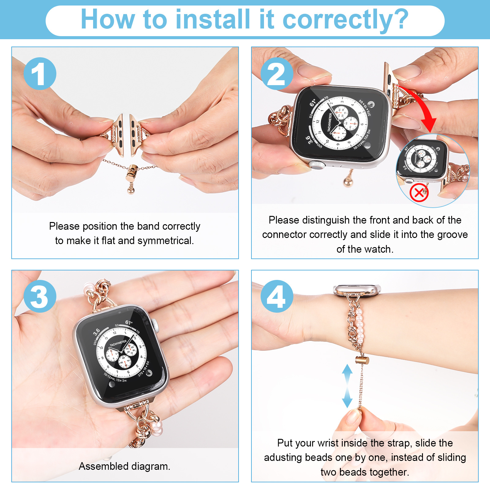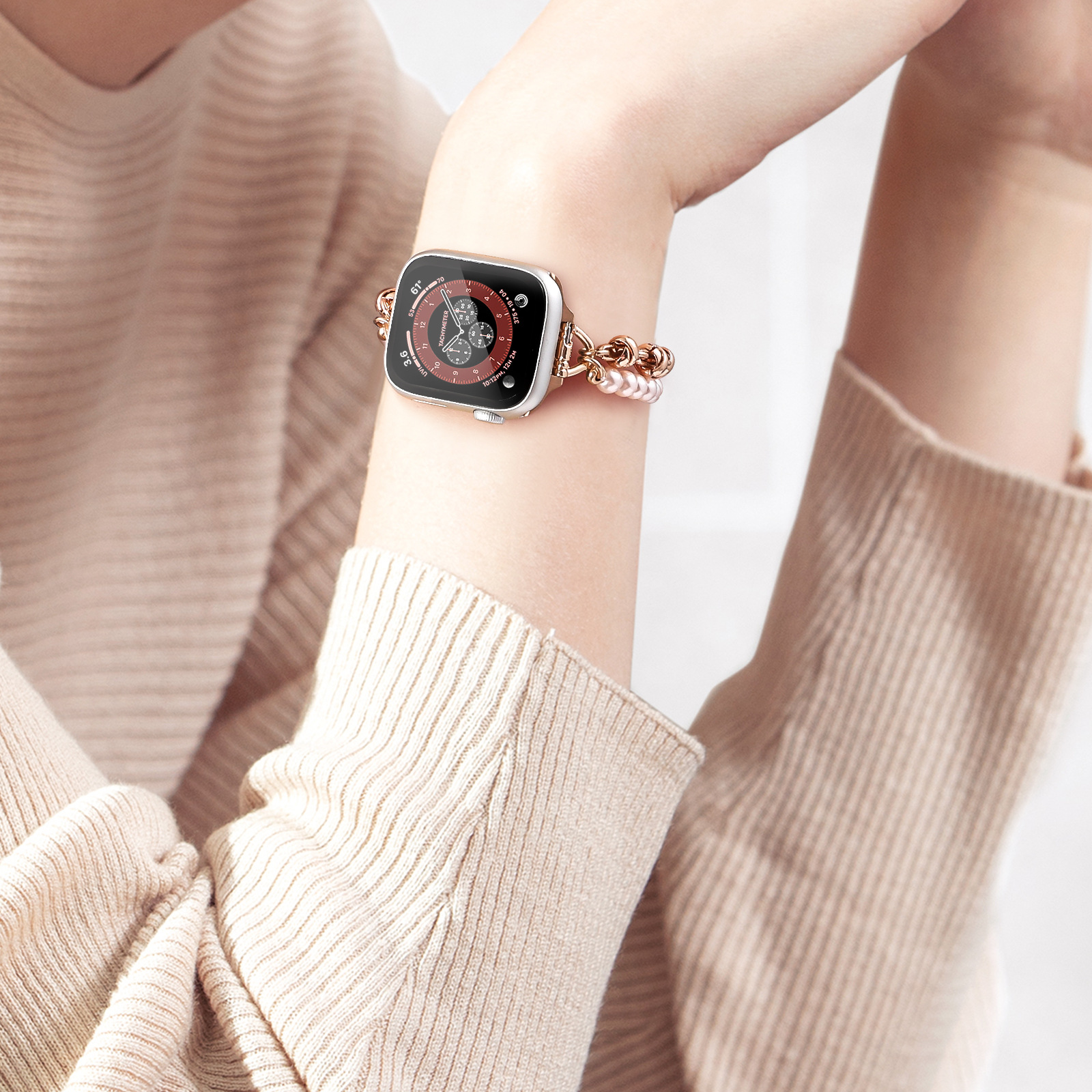 | nameOriginal | Suitable for apple watch band iwatch8 generation stainless steel metal pearl bracelet apple watch Bracelet |