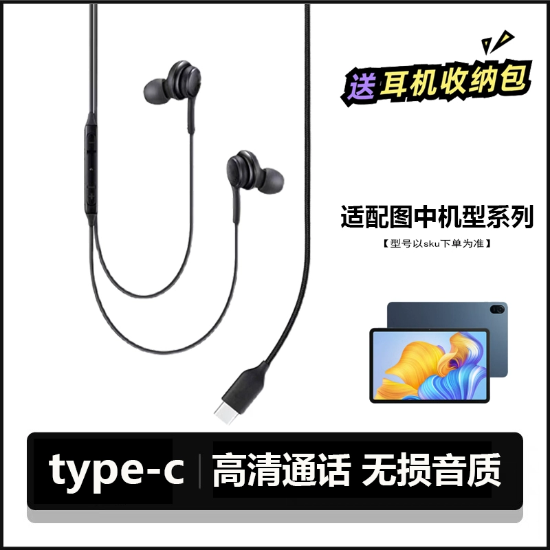 Suitable for Honor tablet 8 headset wired HEY-W09 Huawei tablet earbuds call with microphone game headset