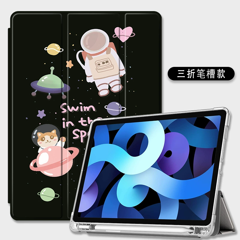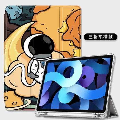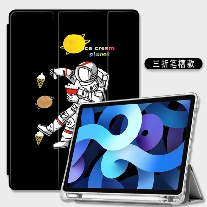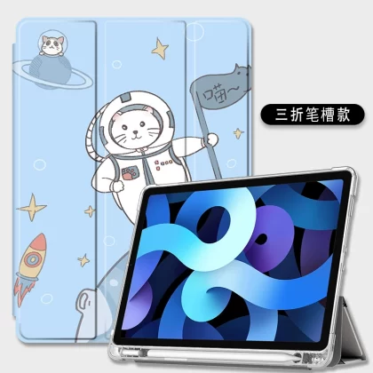 Suitable for ipad protective case 10.2-inch three-fold mini6 airbag pen slot Air4/5 astronaut pro11 silicone mini6 transparent shell 2022 new ipad10 anti-fall 9.7-inch all-inclusive 5