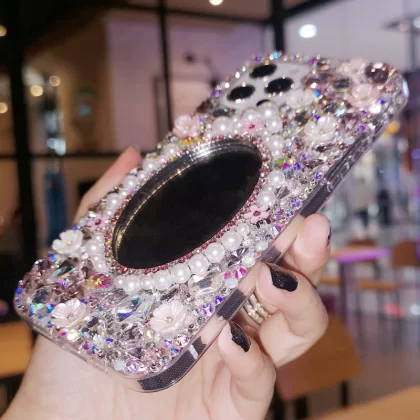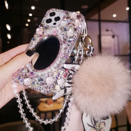 | nameOriginal | Suitable for iPhone15pro max Apple 14 mobile phone case 8plus luxury rhinestone flower mirror fox fur ball 11 protective cover 13 all-inclusive anti-fall Xs female 12 |