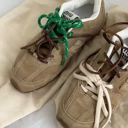 مناسبة لأربطة الحذاء miumiu nb أحذية مشتركة أحذية Forrest Gump أخضر برتقالي أحمر أزرق بيج أبيض حبل رباط حذاء مسطح مستدير