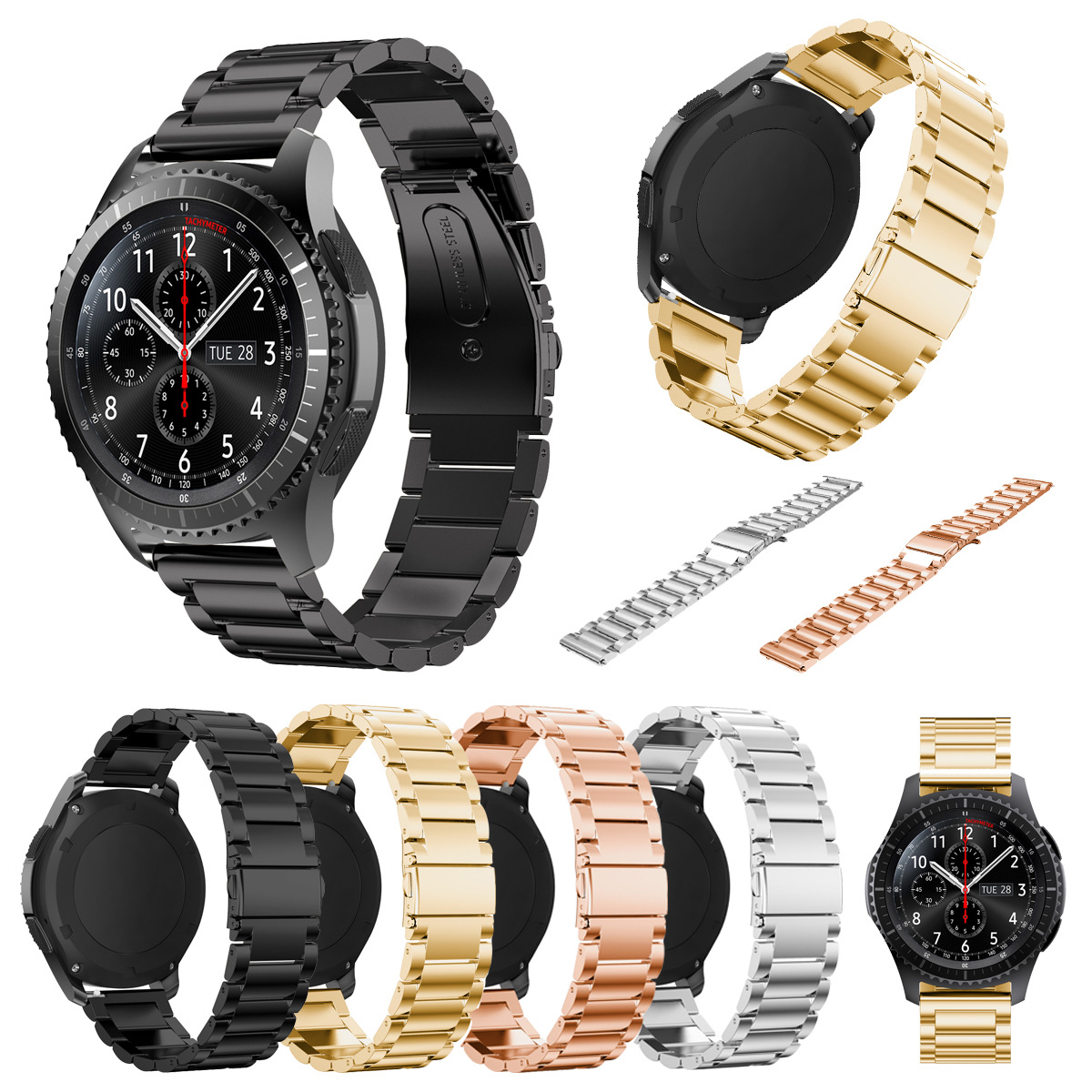 | nameOriginal | Suitable for Samsung GEAR S2/S3 strap stainless steel strap solid three beads strap chain Watch Band |