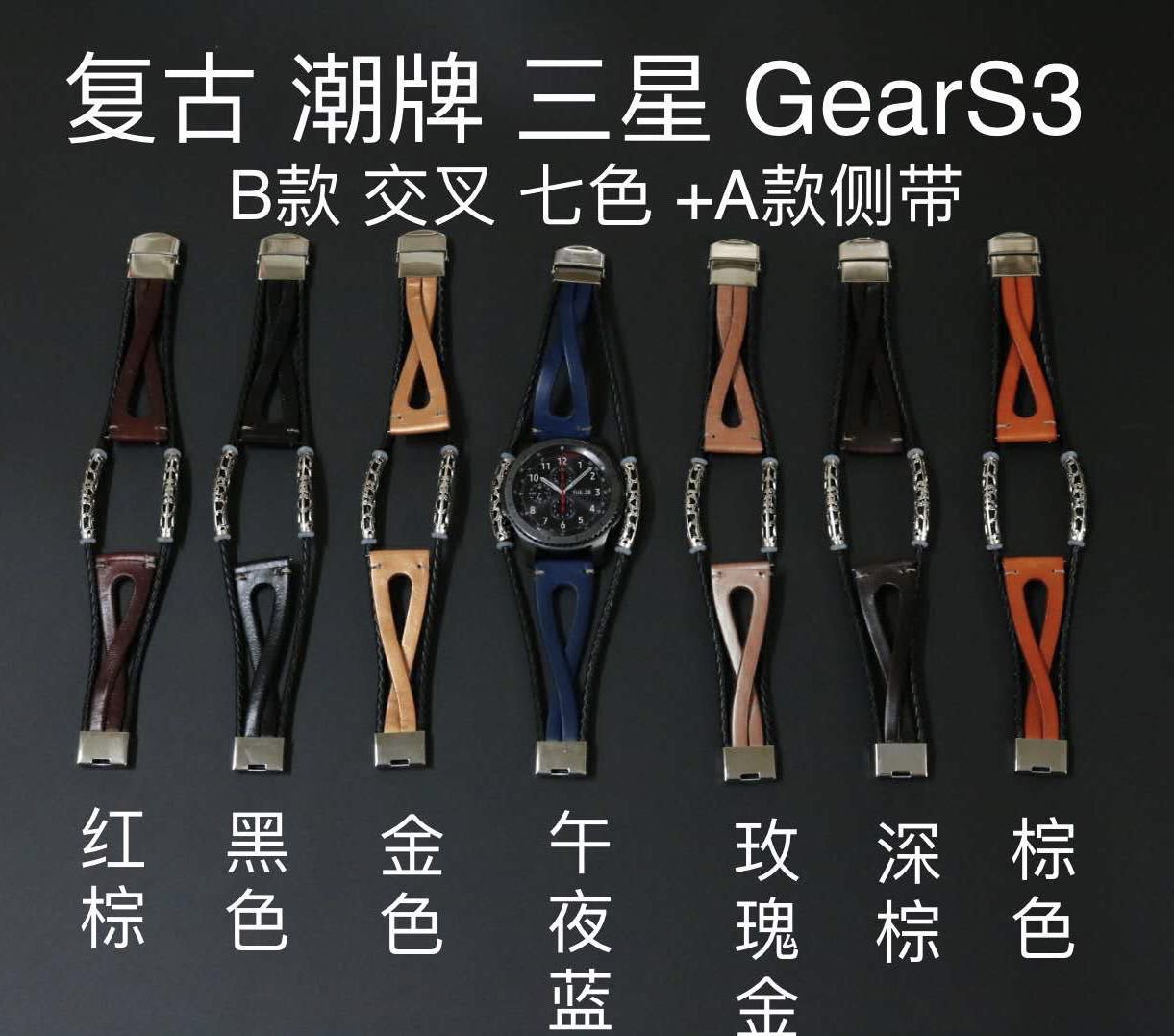 Suitable for Samsung Gear S3 smart watch strap retro trendy wrist leather watch strap Galaxy watch5 4 watch strap