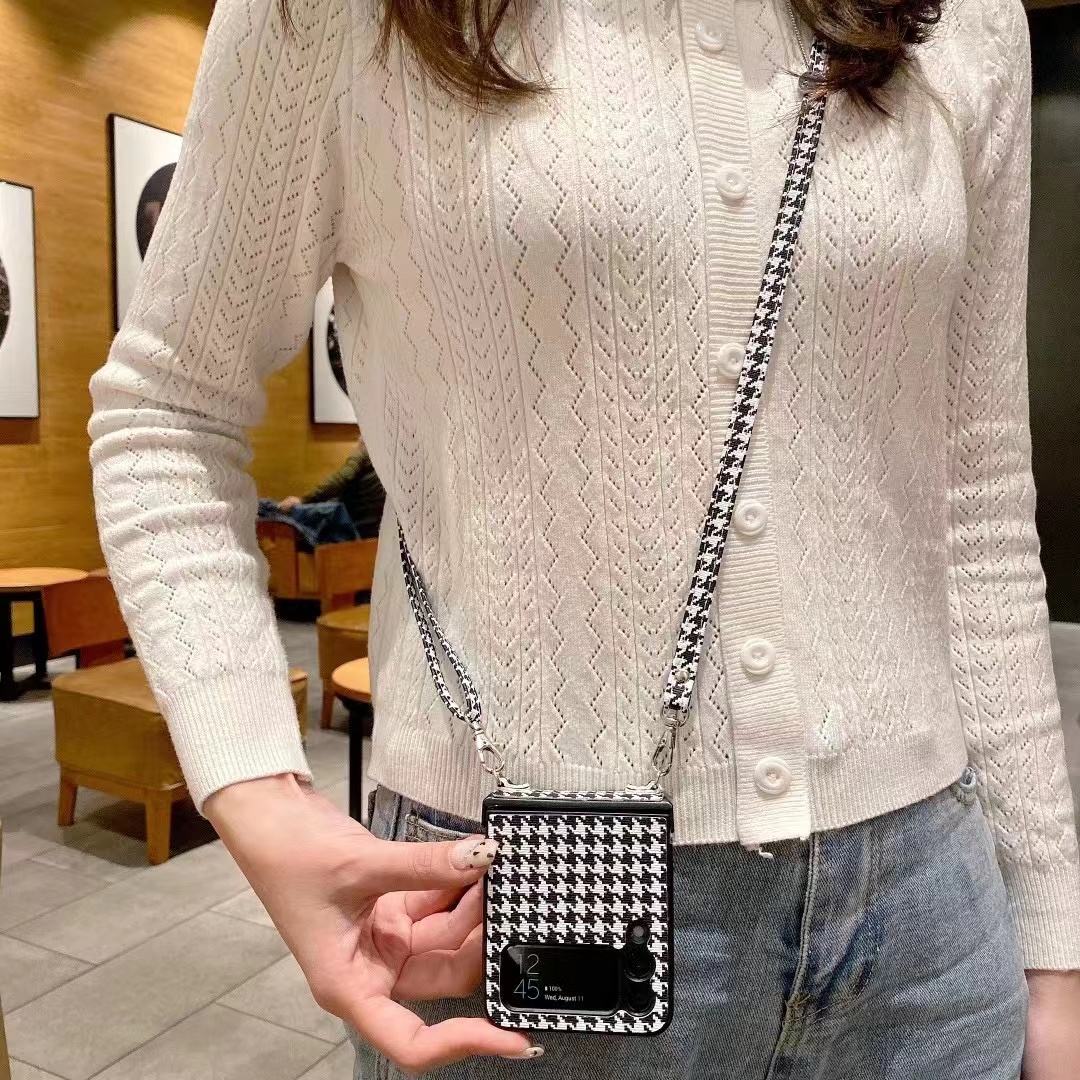 Suitable for Samsung zflip3 mobile phone case Galaxy z flip4 folding screen protective cover bow houndstooth SM-F7110 anti-fall shell Zflip fashion women's F7070/F7000 hard shell