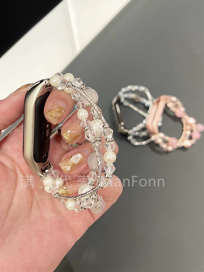 Suitable for Xiaomi Mi Band 9 wristband crystal pearl watch strap 3456 generation bracelet 87nfc wrist strap replacement strap for women