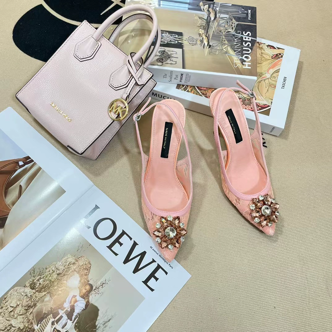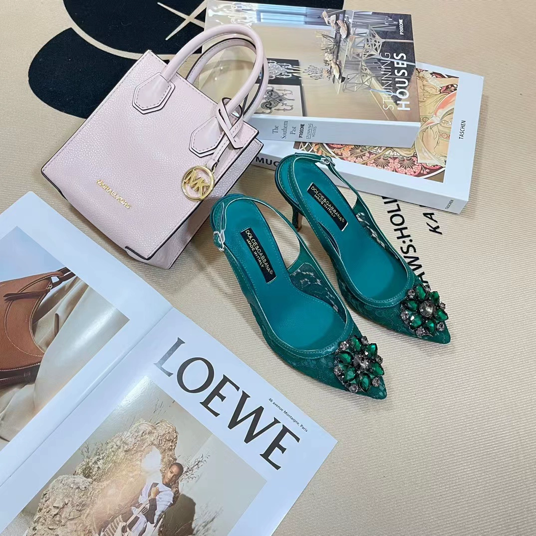 Summer 2023DG 6CM Rhinestone Stiletto Heel Baotou Lace