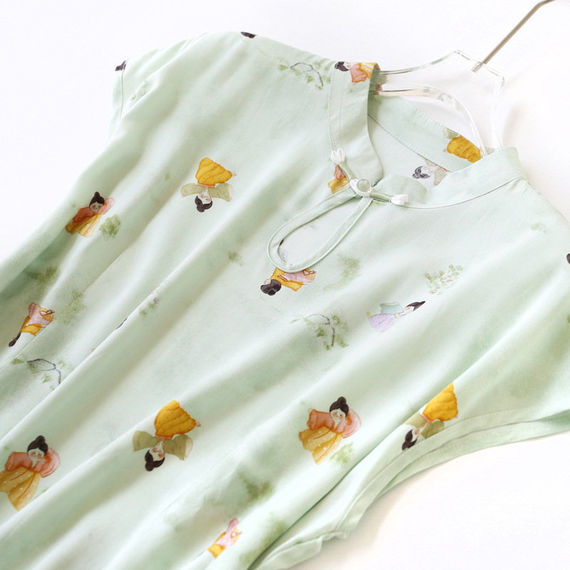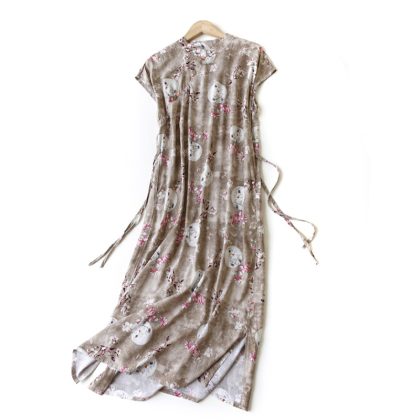 | nameOriginal | Summer 2024 New Arrival Chinese Style Zen Style Modified Cheongsam Women's Cotton Silk Retro Ink Printing Over-the-knee dress |