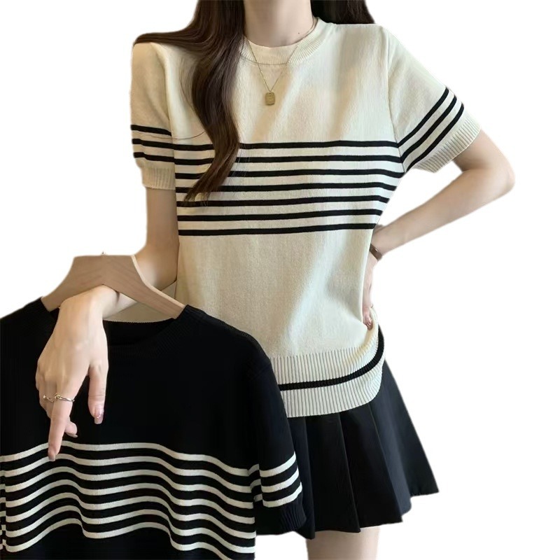 nameOriginal | Summer 2024 New Arrival Striped Short T-Shirt Thin Short-Sleeved Sweater Women's Top |