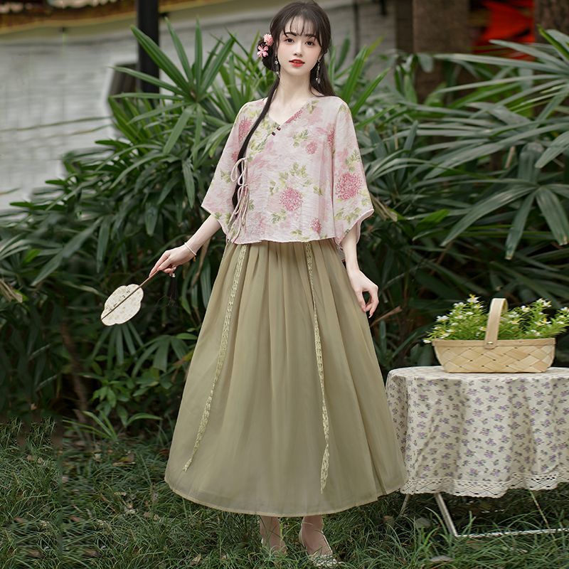 | nameOriginal | Summer 2024 New Chinese Style Retro Chinese Element Printing Modified Tang Suit Hanfu Top Skirt Zen Tea Clothes suit |