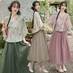 صيف 2024 جديد النمط الصيني الرجعية العنصر الصيني الطباعة تعديل تانغ دعوى Hanfu تنورة علوية زن الشاي الملابس البدلة