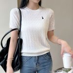 Summer 2024 New Ice Silk short-sleeved sweater wool twist embroidered thin casual all-matching top for women