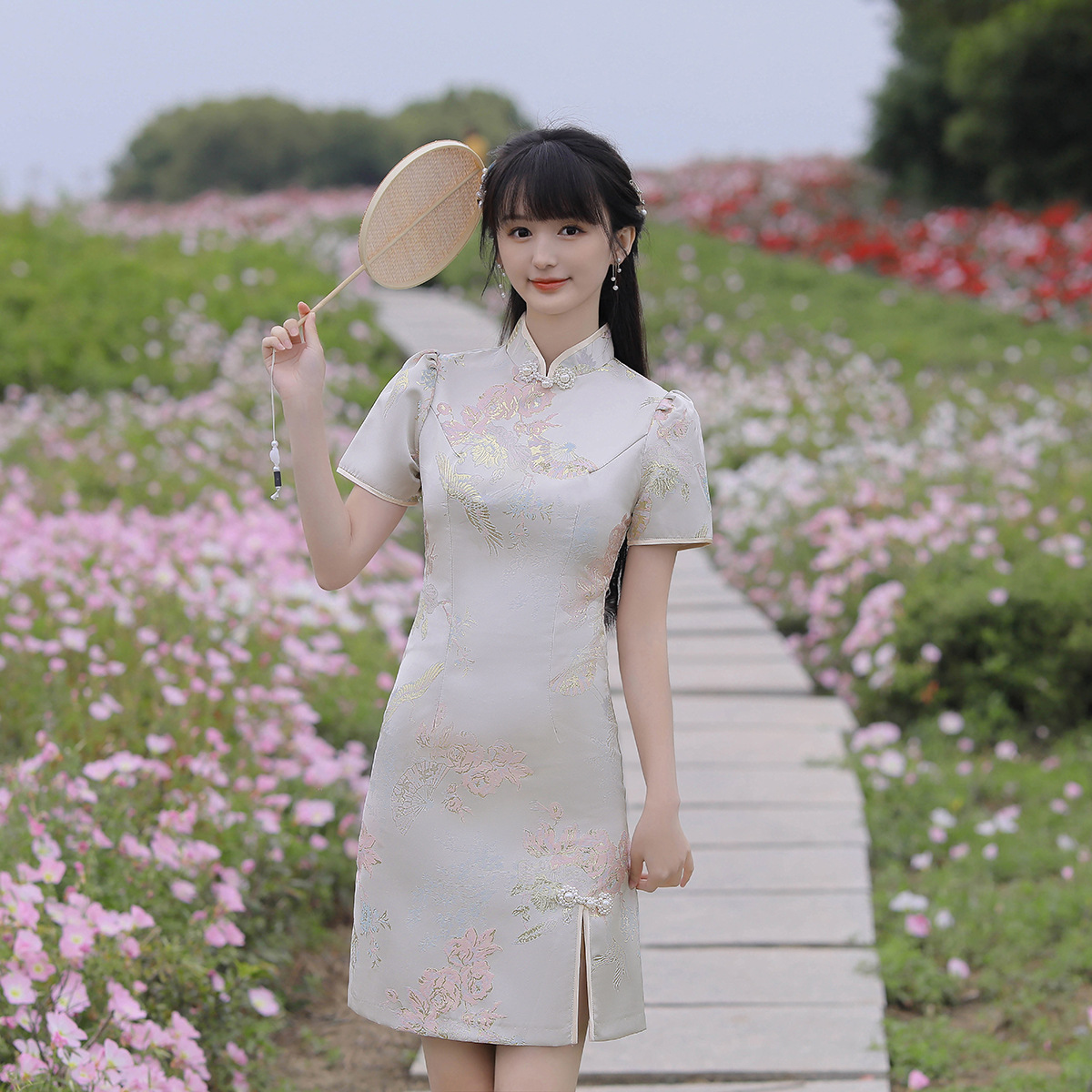 | nameOriginal | Summer 2024 New Jacquard New Chinese Style National Style Sweet Fresh Gentle Modified Cheongsam Dress with Split Front |