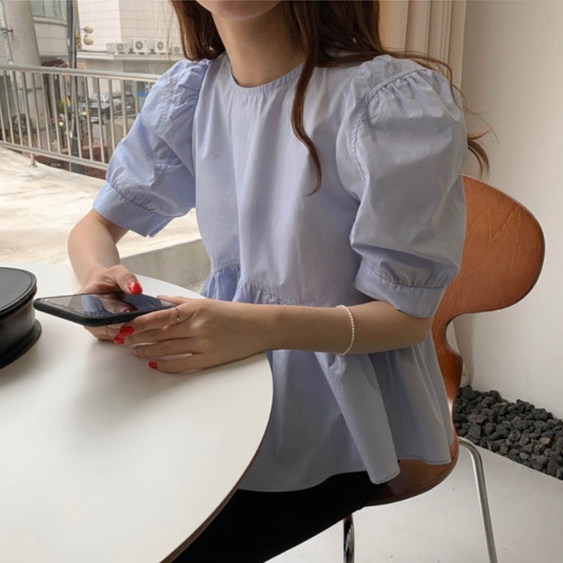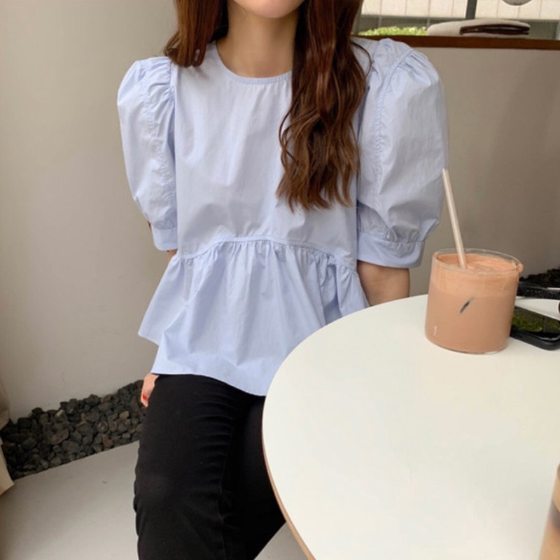Summer 2024 New Minimalist Round Neck Puff Sleeve White Doll Shirt Top Loose Casual Age-reducing Shirt