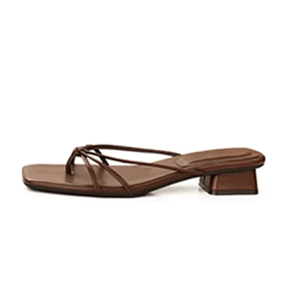 | nameOriginal | Summer 2024 new slippers for women, square toe, thin straps, medium heel, French thick heel, flat bottom flip-flop toe sandals |