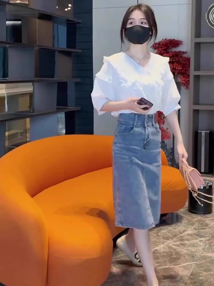 | nameOriginal | Summer 2024 New Style Chanel Style suit Women's Light Luxury High-end Women's Clothing White Shirt Denim Skirt Two-piece Set |