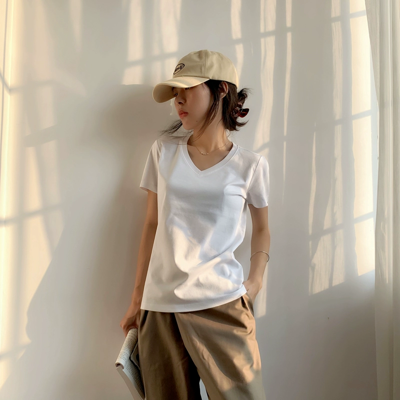 | nameOriginal | Summer 80-count solid color short-sleeved loose simple V-neck T-shirt |