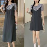 Summer A-line skirt for fat girls to cover belly and look slimming, casual short sleeves