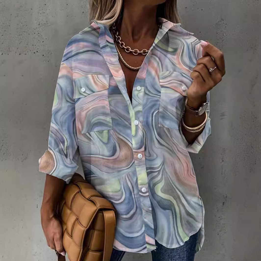 | nameOriginal | Summer and Spring New Women's Stitching Design Sense Holiday Style Elegant Commuter Long Sleeve Shirt Top Plant 3D Printing |