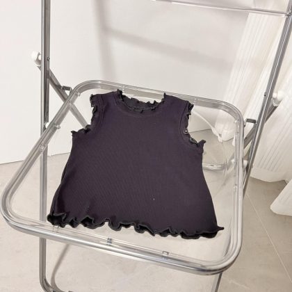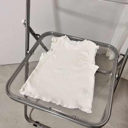 Summer Auricularly Ear Girls' Vest Sling High Elastic Thread Children's Vest Sleeveless Interior Solid Color All-Match Cotton
