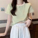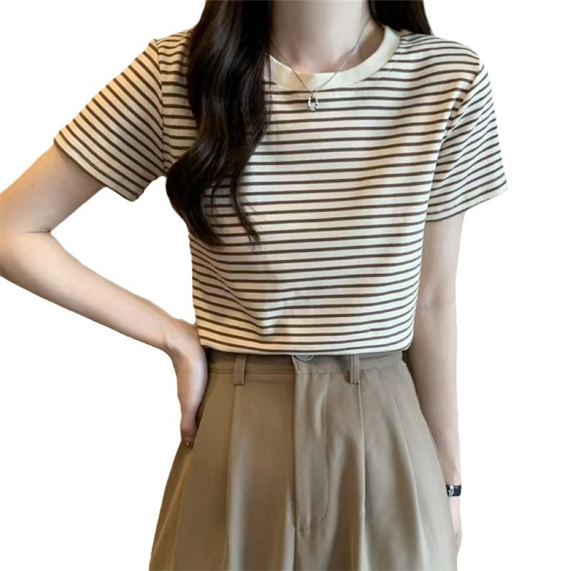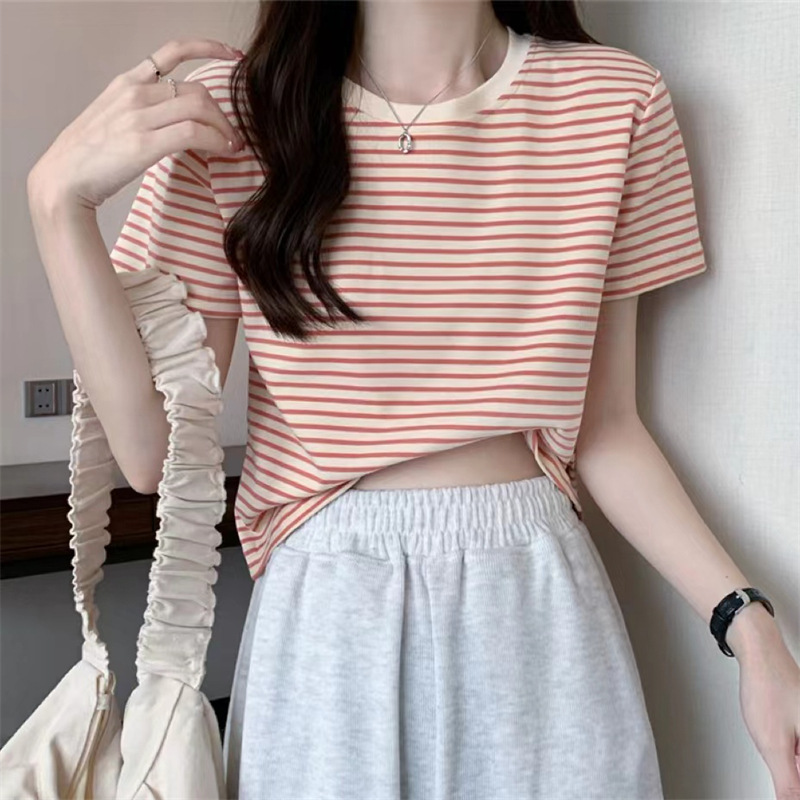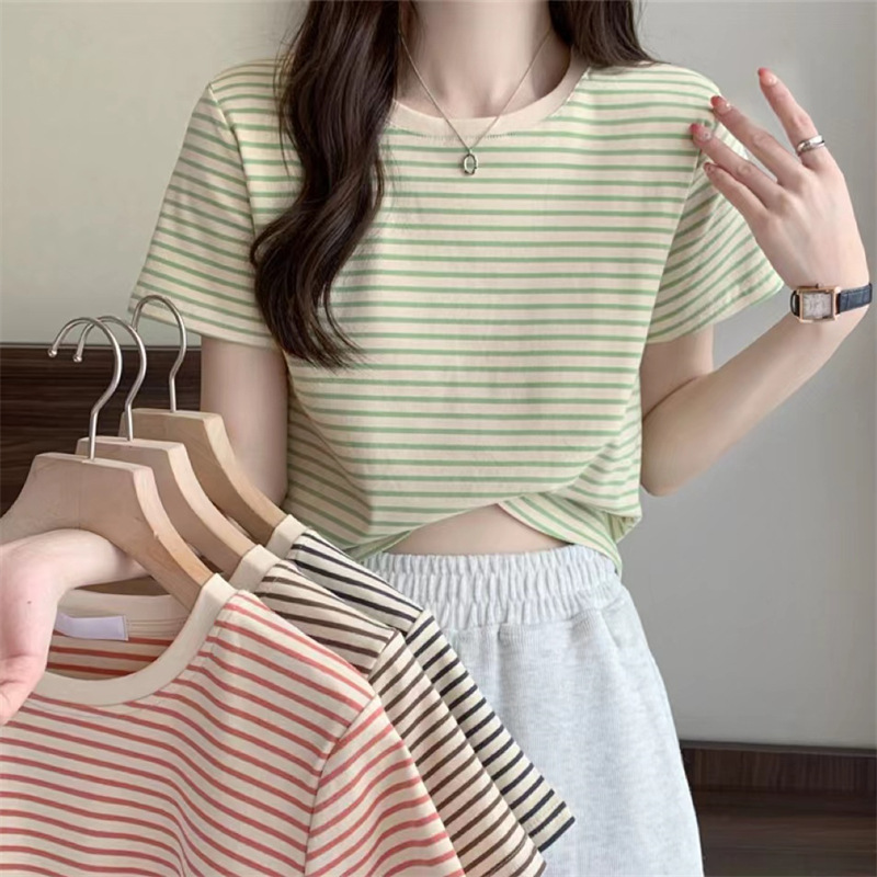 | nameOriginal | Summer Beautiful Fashion Stylish Small Body-Slimming Short T-shirt Contrast Color Pinstripe Short Sleeve T-shirt Women's Top |