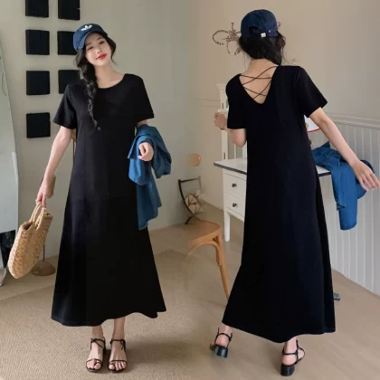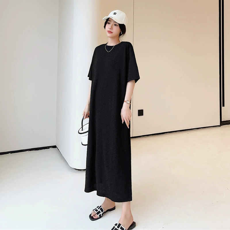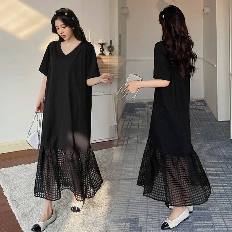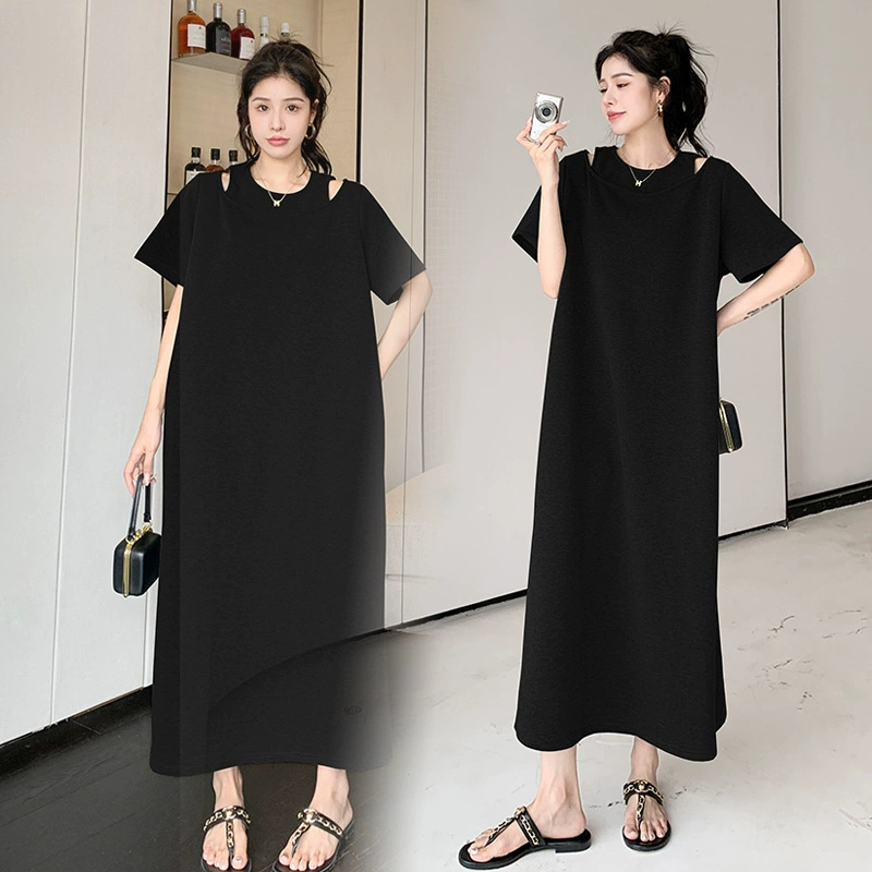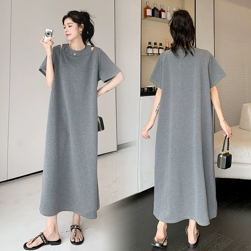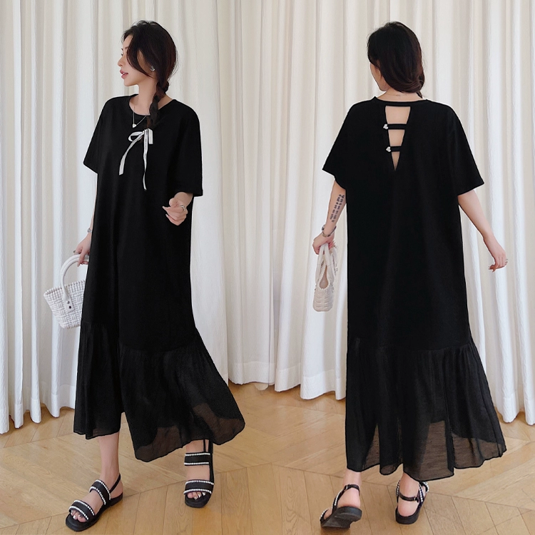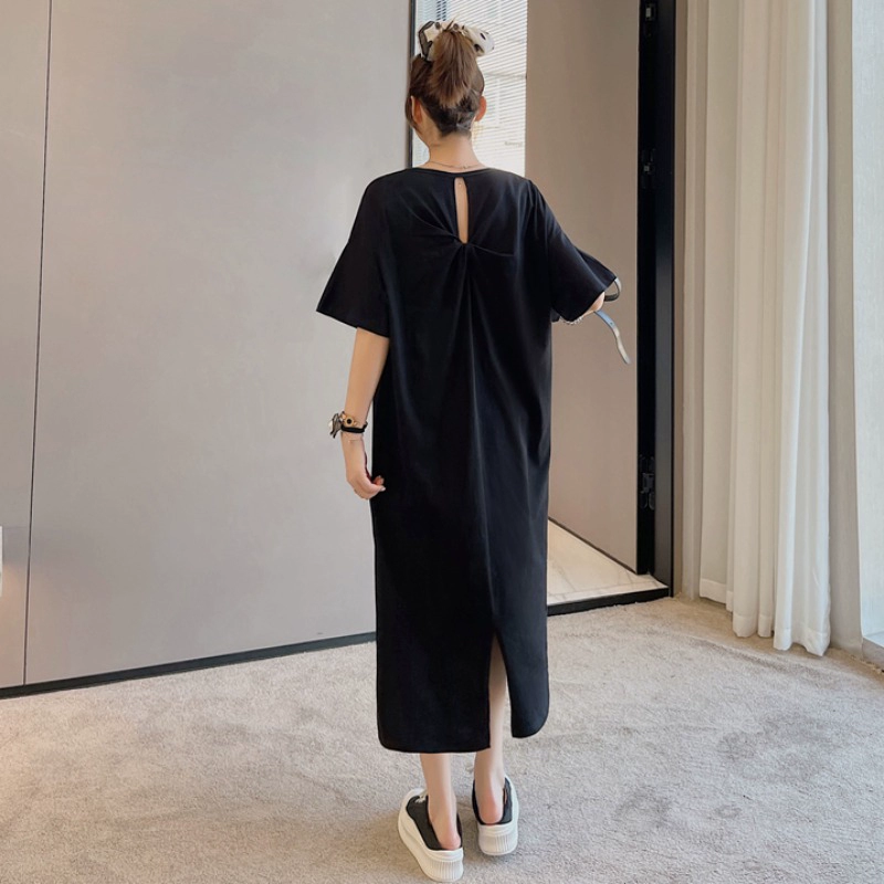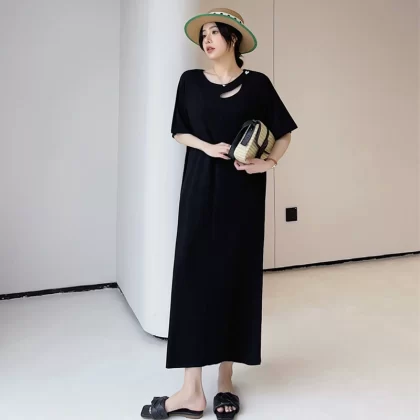 Summer casual t-shirt dress over the knee loose hollow short sleeves