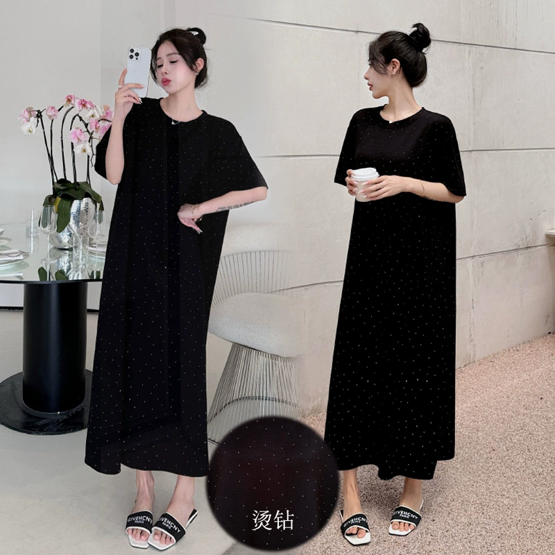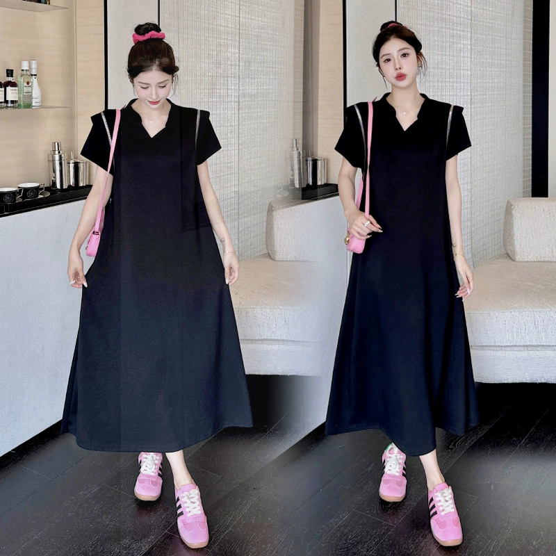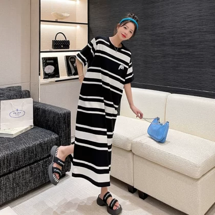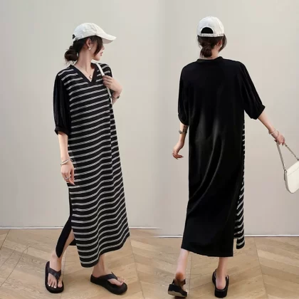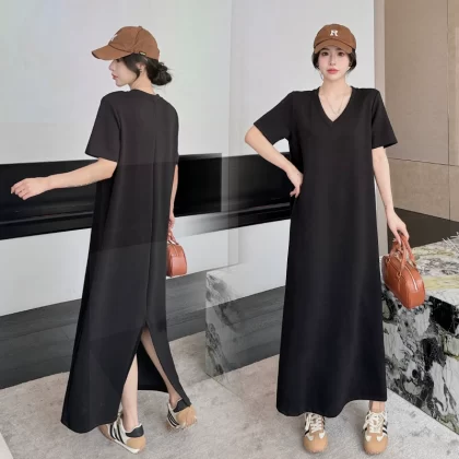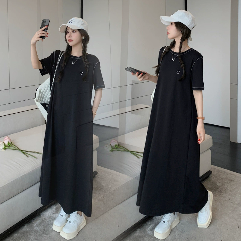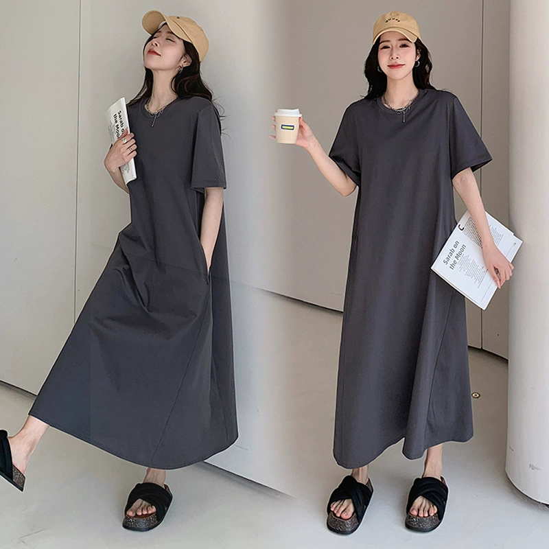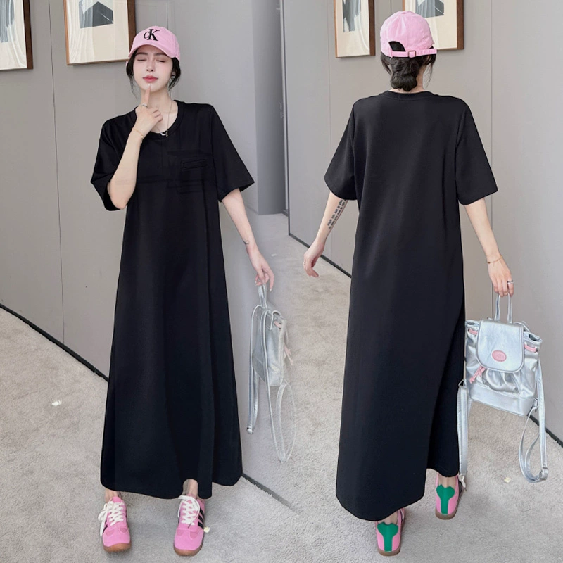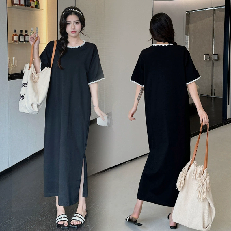 Summer casual t-shirt dress over the knee loose hollow short sleeves
