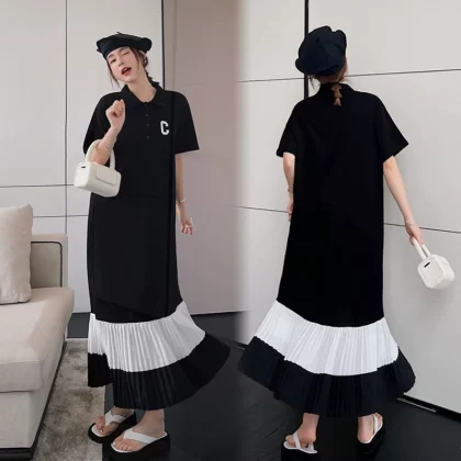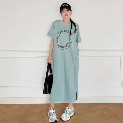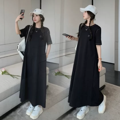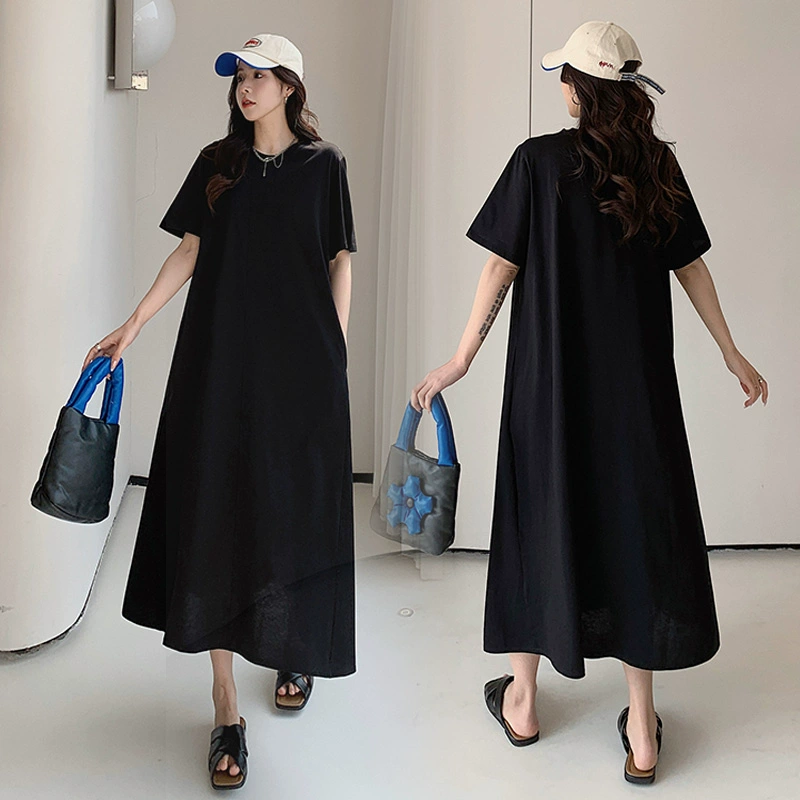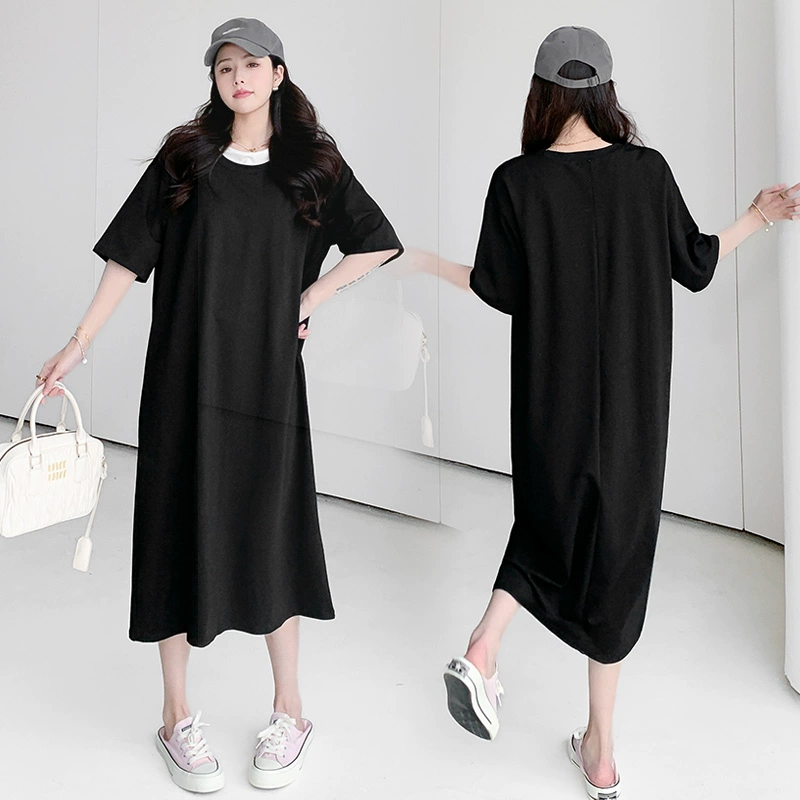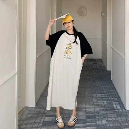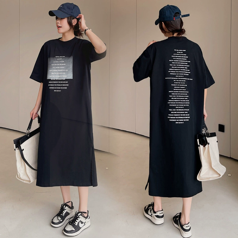 تنورة T -Shirt في التداخل غير الرسمي الصيفي ، أكمام قصيرة فضفاضة جوفاء