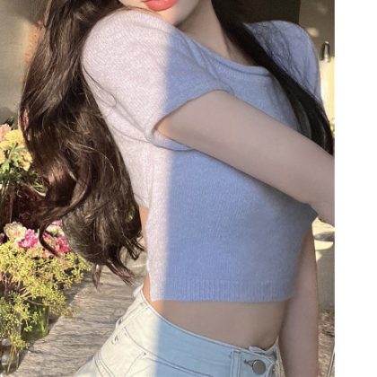 | nameOriginal | Summer Chic Design Sense Niche Pure Sweet Spice Girls Sexy Backless Knitted Short-sleeved T-shirt Women's Strap Short Top |