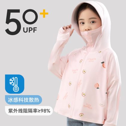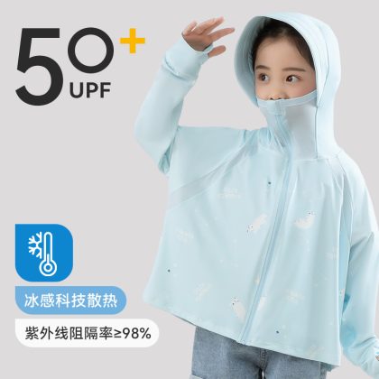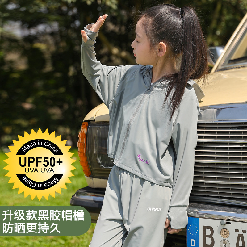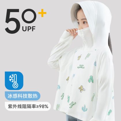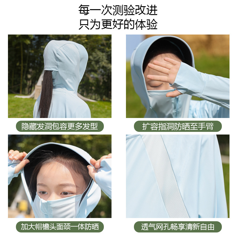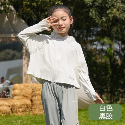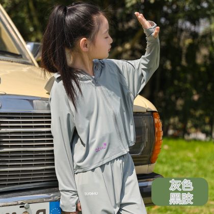 Summer Children's Ice Silk Sunscreen Clothing Women's UV-resistant Lightweight Breathable Black Rubber Hat Brim Hooded Sunscreen Coat