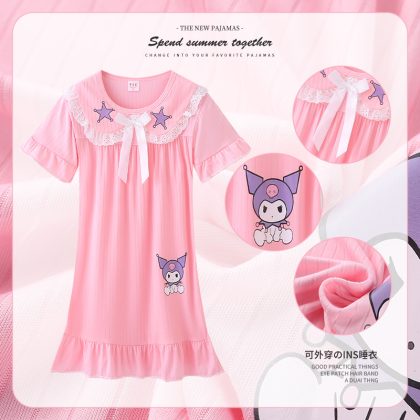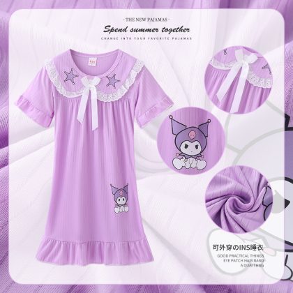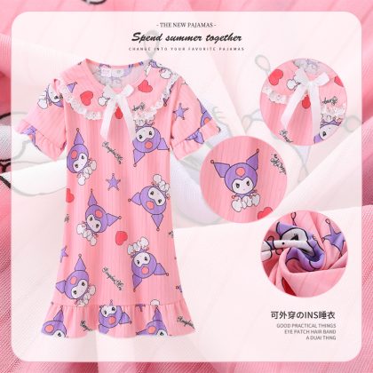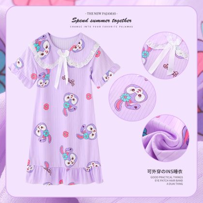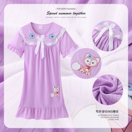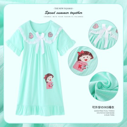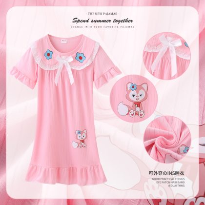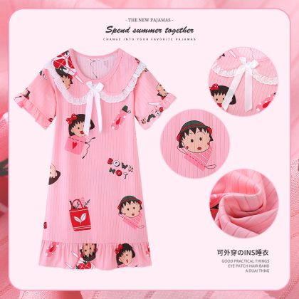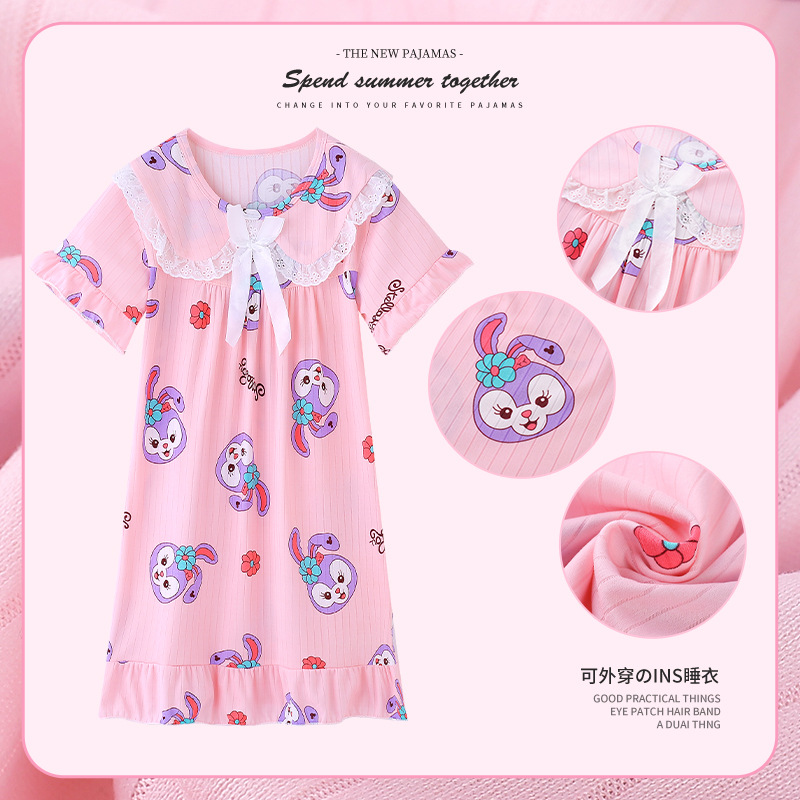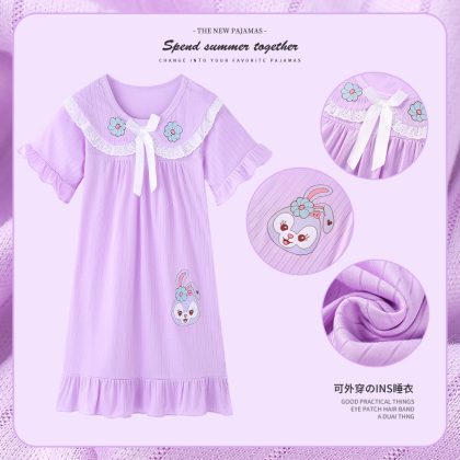 بيجامة أطفال صيفية بأكمام قصيرة فستان نوم للفتيات الصغيرات الرقيقة فستان الأميرة للأطفال متوسط ​​وكبير ملابس منزلية للأطفال