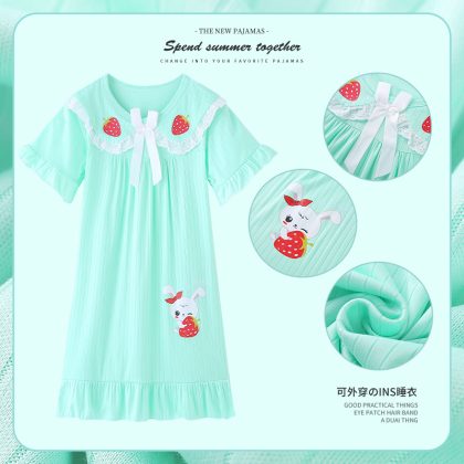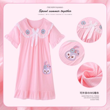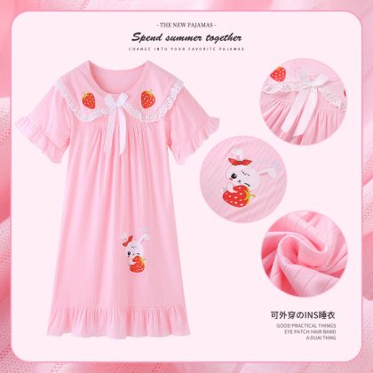 Summer children's pajamas short-sleeved girls' nightdress thin little girl princess baby dress medium and large children's homewear