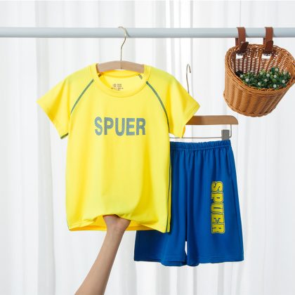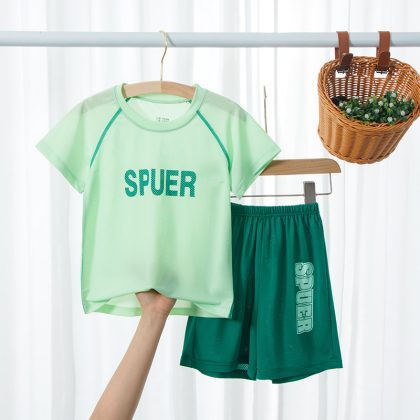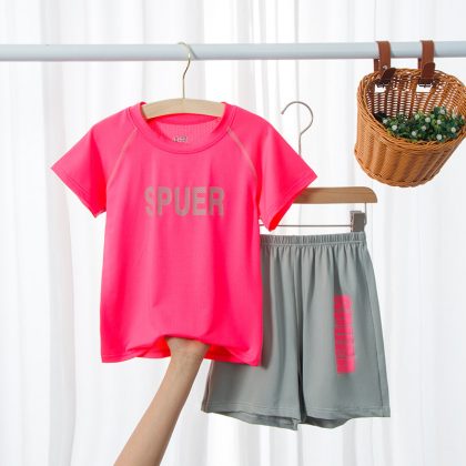 Summer Children's Short-sleeved Suit Elastic Mesh Quick-drying Suit Boys and Girls Sports Casual Clothes Suit Trendy Children's Clothing