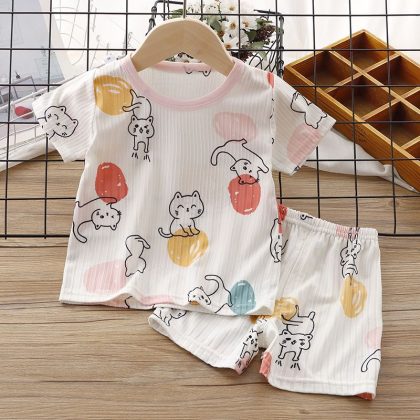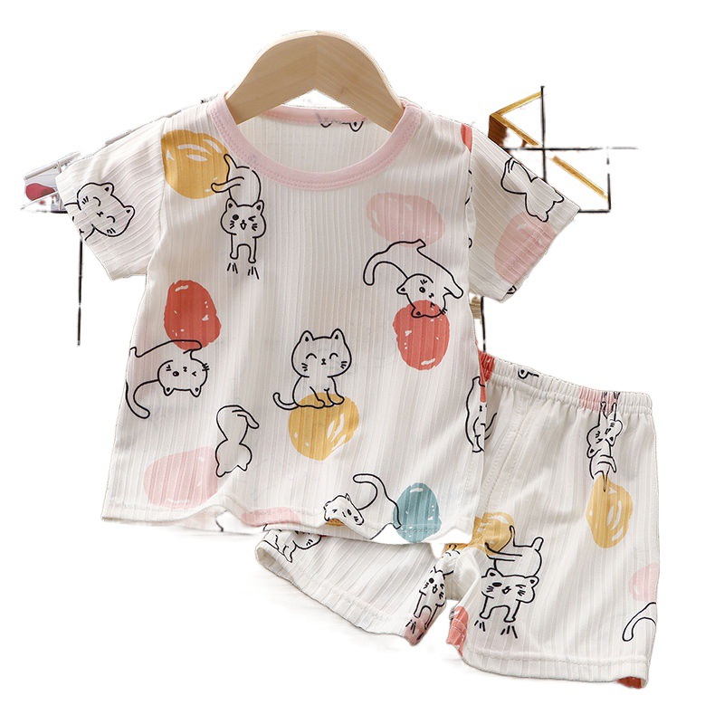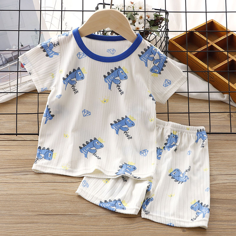 Summer Children's Short-sleeved T-shirt suit Boys' Ice Silk Thin Half-sleeved Shorts Baby Girls' Lightweight Breathable Air-conditioning Clothing